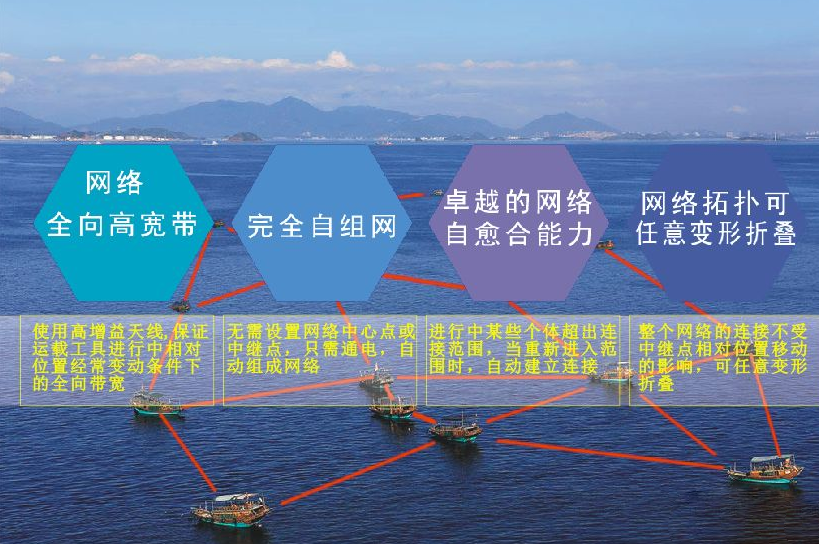 当多艘船只配合竣事一项任务时,屡屡须要设置无线宽带搜集,达成语音、视频、数据等联网、互通。北京万蓝通讯AnyMESH®无线自治网海上通讯体系以其特殊的自组网、自愈合等本事特质,治理了船只部队行进中通信的多项本事困难。
